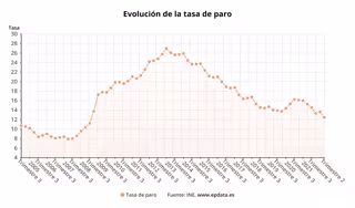 En el segundo trimestre la tasa de paro disminuyó más de un punto, hasta el 12,48%, y la tasa de actividad subió en dos décimas, hasta el 58,71%, tras aumentarse el número de activos en 128.800 personas entre abril y junio (+0,5%).