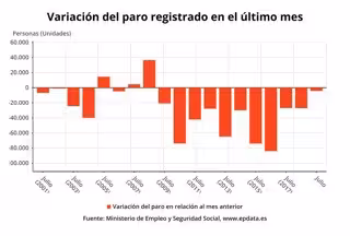 Variación mensual del paro registrado en los meses de julio - EPDATA