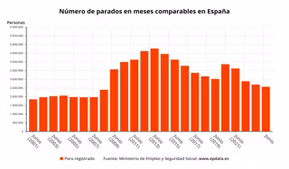 Tras el retroceso de junio, impulsado sobre todo por el sector servicios, el número total de desempleados se situó en 2.561.067 parados, su cifra más baja desde agosto de 2008, ha subrayado el Ministerio, que ha resaltado que esta vez esto se ha conseguido "con récord de empleo".