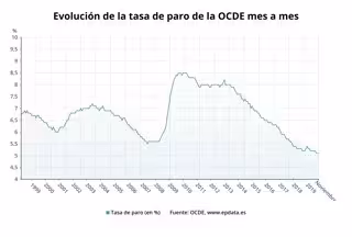 La tasa de paro de la Organización para la Cooperación y el Desarrollo Económico (OCDE) se mantuvo sin cambios en el 5,1% el pasado mes de noviembre, repitiendo así por tercer mes consecutivo su mínimo histórico, según ha informado la institución con sede en París.