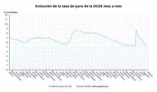 Evolución interanual de la tasa de paro en los países de la OCDE - EPDATA