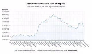 El número de parados registrados en las oficinas de los servicios públicos de empleo (antiguo Inem) bajó en 74.381 desempleados en noviembre (-2,3%), su mejor dato en este mes en la serie histórica comparable, que arranca en 1996, según datos publicados este jueves por el Ministerio de Trabajo y Economía Social.
