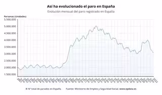 En el último año el desempleo acumula un descenso récord de 841.275 parados, lo que supone un 21,2% menos.