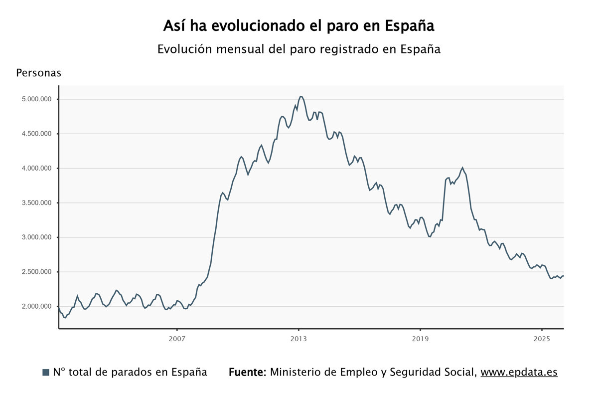 El incremento del paro en febrero de este año es el más acusado en este mes desde 2021, cuando aumentó en más de 44.400 personas. En 2025 y 2024, el desempleo descendió en febrero, en 5.994 y 7.452 personas, respectivamente, mientras que en 2023 subió en 2.618 desempleados y en 2022 bajó en 11.394.