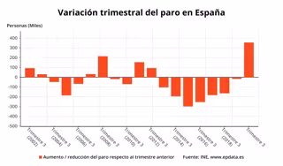 En términos desestacionalizados, la ocupación registró un incremento trimestral del 2,98%, el mayor aumento desde 2005, en tanto que el paro subió casi un 12%. No subía tanto desde principios de 2009.