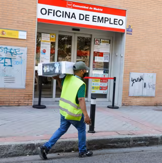 Archivo - Un repartidor pasa por una oficina del SEPE - Marta Fernández Jara - Europa Press - Archivo