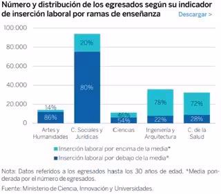 El indicador muestra que las posibilidades de inserción laboral de las distintas titulaciones no tienen relación alguna con el volumen de engresados, lo que apunta a un "serio desajuste" entre la oferta formativa y la empleabilidad, que en cambio, no es uniforme.