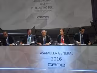 Así lo ha señalado Rosell durante la clausura de la Asamblea General 2016 de la patronal, a la que también asistieron el Rey Felipe VI, la ministra de Empleo y Seguridad Social, Fátima Báñez, el presidente del BBVA, Francisco González, y el secretario general de UGT, Pepe Álvarez, entre otros.