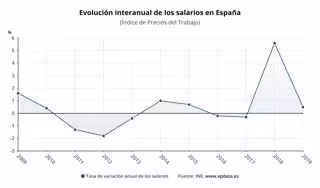 Los salarios aumentaron un 0,5% en 2019, lo que supone 5,1 puntos menos que en 2018, según el Índice de Precios del Trabajo (IPT) publicado este miércoles por el Instituto Nacional de Estadística (INE).
