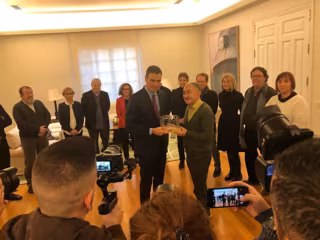 Según ha informado Presidencia del Gobierno, la delegación de UGT entregó a Sánchez durante la reunión una escultura conmemorativa, con el logotipo del sindicato enmarcado por las palabras "igualdad, solidaridad, derechos y empleo".