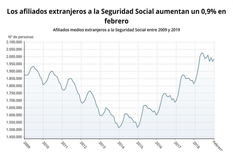 Con este repunte, la afiliación de extranjeros regresa a tasas positivas después de haber perdido más de 26.000 cotizantes en enero con la finalización de la campaña navideña.