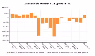La Seguridad Social ganó en noviembre una media de 31.638 cotizantes respecto al mes de octubre (+0,2%), lo que situó el número total de ocupados en 19.022.002 cotizantes, superando por primera vez la barrera de los 19 millones desde marzo, según datos del Ministerio de Inclusión, Seguridad Social y Migraciones, que ha destacado que ésta es la mayor subida de afiliados medios desde 2006 y el séptimo mes consecutivo en el que aumenta la afiliación media.