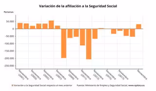Variació mensual del número de afiliados a la Seguridad Social en noviembre - EPDATA