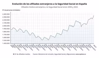 Evolución de los afiliados extranjeros a la Seguridad Social en España - EPDATA