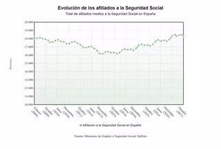 En el último año, la Seguridad Social acumula un repunte de 615.259 afiliados, un 3,47% más, su mejor dato interanual en once años.