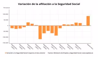 Si se atiende el dato de último día de mes (por tanto, no en valores medios), el sistema ganó 252.425 cotizantes entre el 1 y el 30 de septiembre.