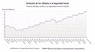 No obstante, pese el descenso de ocupados de noviembre, el número de afiliados medios marcó máximos para este mes, con un total de 21.825.233 cotizantes.