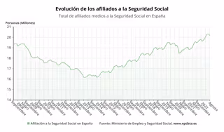 Evolución de la afiliación a la Seguridad Social en España - EPDATA