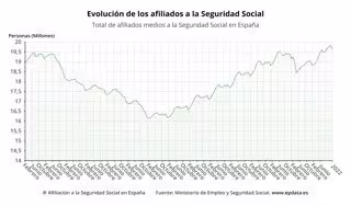 Evolución de la afiliación a la Seguridad Social en España - EPDATA
