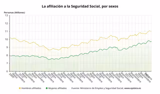 Tras este incremento, la cifra de mujeres trabajadoras se situó a cierre de octubre en 9.836.295 afiliadas, nuevo máximo histórico, mientras que el número de varones ocupados finalizó el décimo mes del año en 10.981.362 cotizantes.