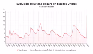 La tasa de desempleo de Estados Unidos se disparó más de diez puntos porcentuales, hasta situarse en el 14,7% en abril, lo que supone su mayor alza mensual de la historia, así como el peor dato registrado en el país desde que hay datos, según las cifras publicadas este viernes por la oficina de estadísticas laborales del Departamento de Trabajo estadounidense.