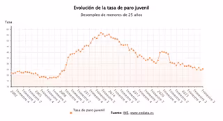 Tras el repunte del desempleo en este colectivo, la tasa de paro juvenil subió hasta el 25,42% a cierre del tercer trimestre, casi nueve décimas más que en el trimestre previo (24,54%).