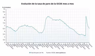 La tasa de desempleo de los países de la Organización para la Cooperación y el Desarrollo Económico (OCDE) se situó el pasado mes de marzo en el 6,5%, una décima por debajo de la lectura del mes anterior, pero aún lejos del 5,2% registrado en febrero de 2020, antes del impacto de la pandemia.