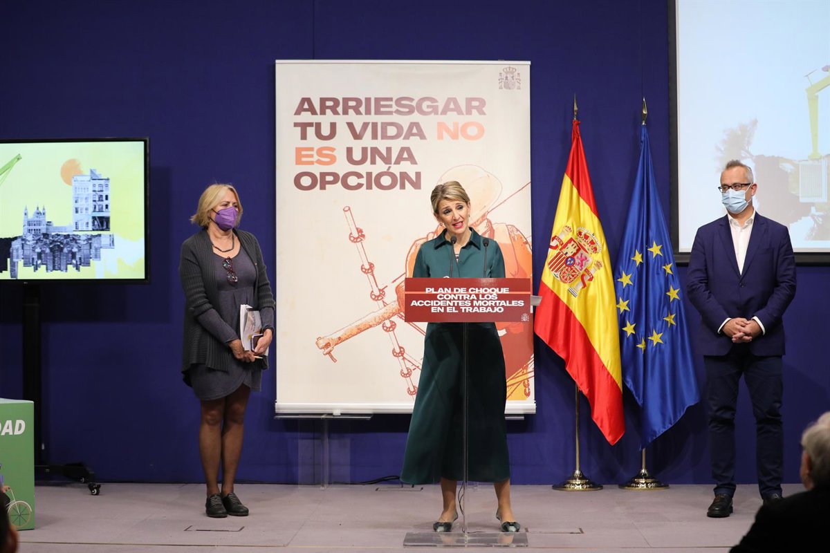 La vicepresidenta segunda y ministra de Trabajo, Yolanda Díaz, ha presentado este jueves en rueda de prensa este plan, coincidiendo con el lanzamiento de una campaña de sensibilización en los medios de comunicación para frenar la mortalidad en el trabajo.
