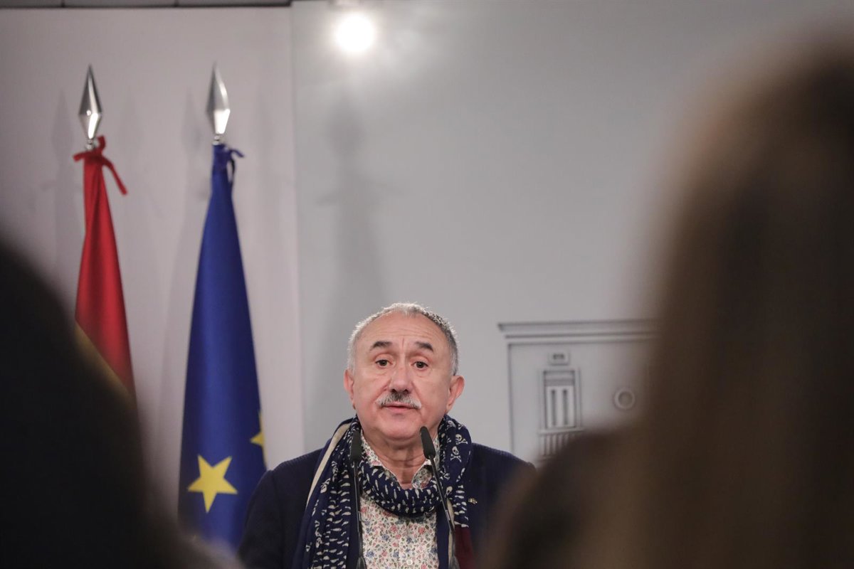 El secretario general de UGT, Pepe Álvarez, en rueda de prensa tras la firma el acuerdo de subida del Salario Mínimo Interprofesional (SMI), en La Moncloa /Madrid (España), a 30 de enero de 2020. - Jesús Hellín - Europa Press