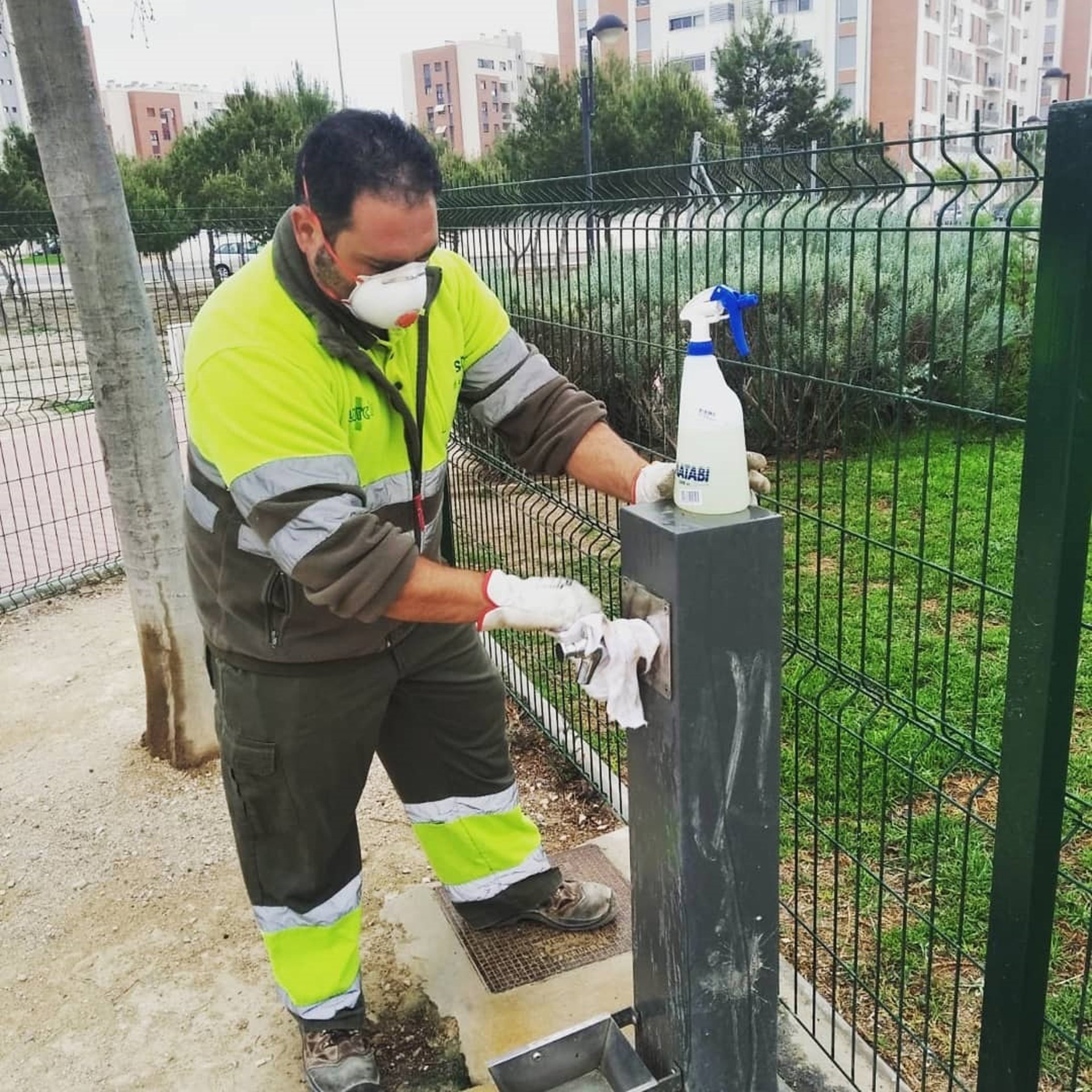 Labores de limpieza y desinfección en los jardines infantiles y zonas de descanso de Joven Futura de Murcia - AYUNTAMIENTO MURCIA