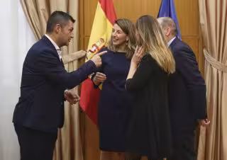 (I-D) El presidente de la UPTA (Unión de Profesionales y Trabajadores Autónomos), Eduardo Abad; la ministra de Trabajo y Economía Social, Yolanda Díaz. - Eduardo Parra - Europa Press - Archivo