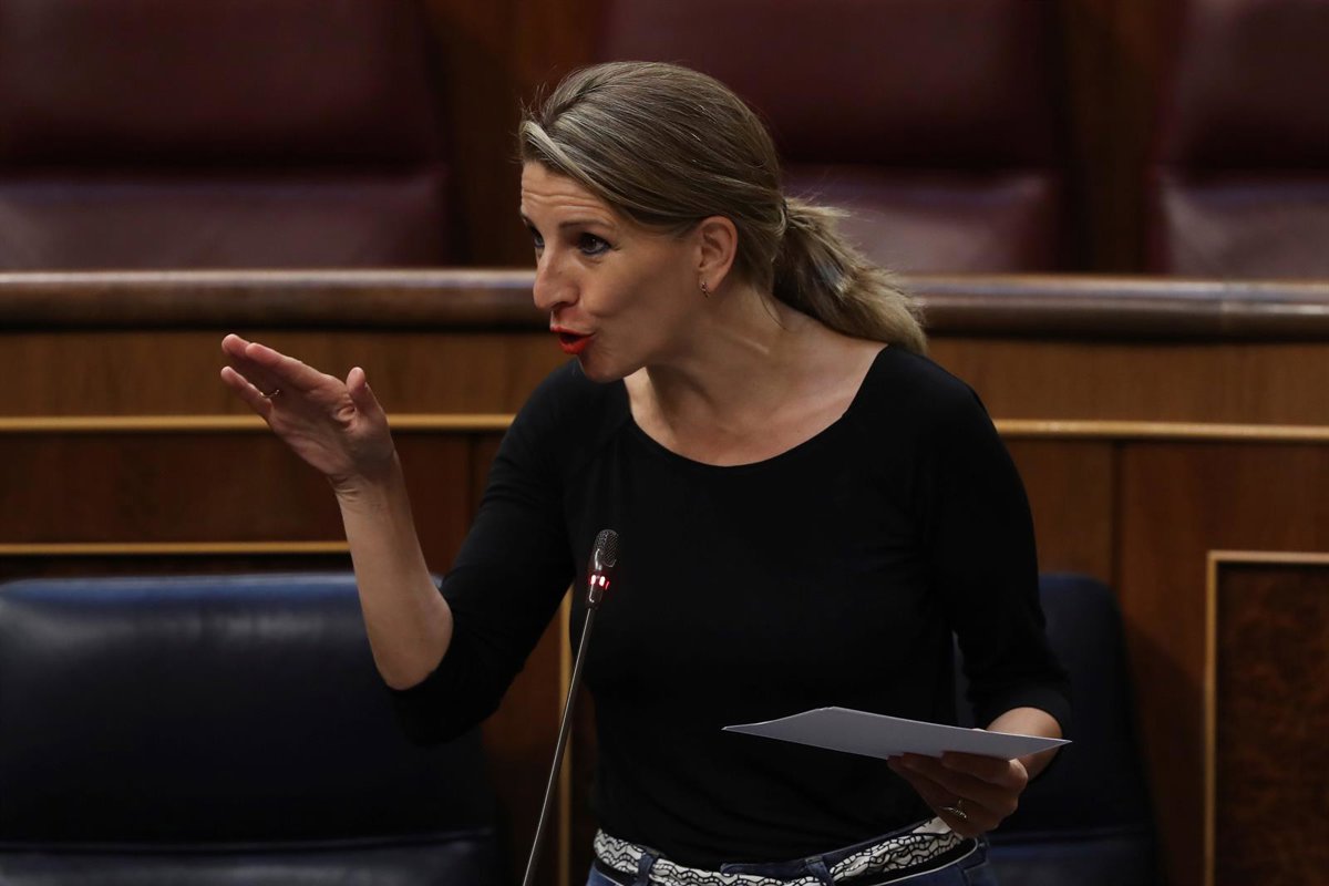 La ministra de Trabajo y Economía Social, Yolanda Díaz, defiende este miércoles ante el Pleno del Congreso la convalidación del decreto ley que amplía hasta el 30 de junio las facilidades de los expedientes de regulación temporal de empleo (ERTE) por fuerza mayor derivados de la crisis del Covid-19 y que abre la puerta a prorrogar este plazo en caso de persistir las restricciones de actividad por la pandemia del coronavirus.