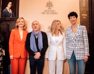 (I-D) La ministra de Educación, Pilar Alegría; el secretario general de UGT, Pepe Álvarez; la vicepresidenta segunda y ministra de Trabajo, Yolanda Díaz, y la ministra de Inclusión, Elma Saiz, en 'Los Desayunos del Ateneo' - Gabriel Luengas - Europa Press