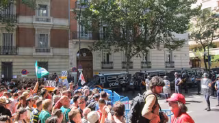 Tras unos 40 minutos de protesta, los agentes antidisturbios se han despojado de los cascos y los escudos para esperar a que la concentración decayera por sí misma y, hacia las 15.00 horas, al grupo que controlaba la calle se les ha unido otra decena de 'lecheras' que han llegado desde la plaza de Colón, dejando así rodeadas a la veintena de personas que aún quedaban protestando.