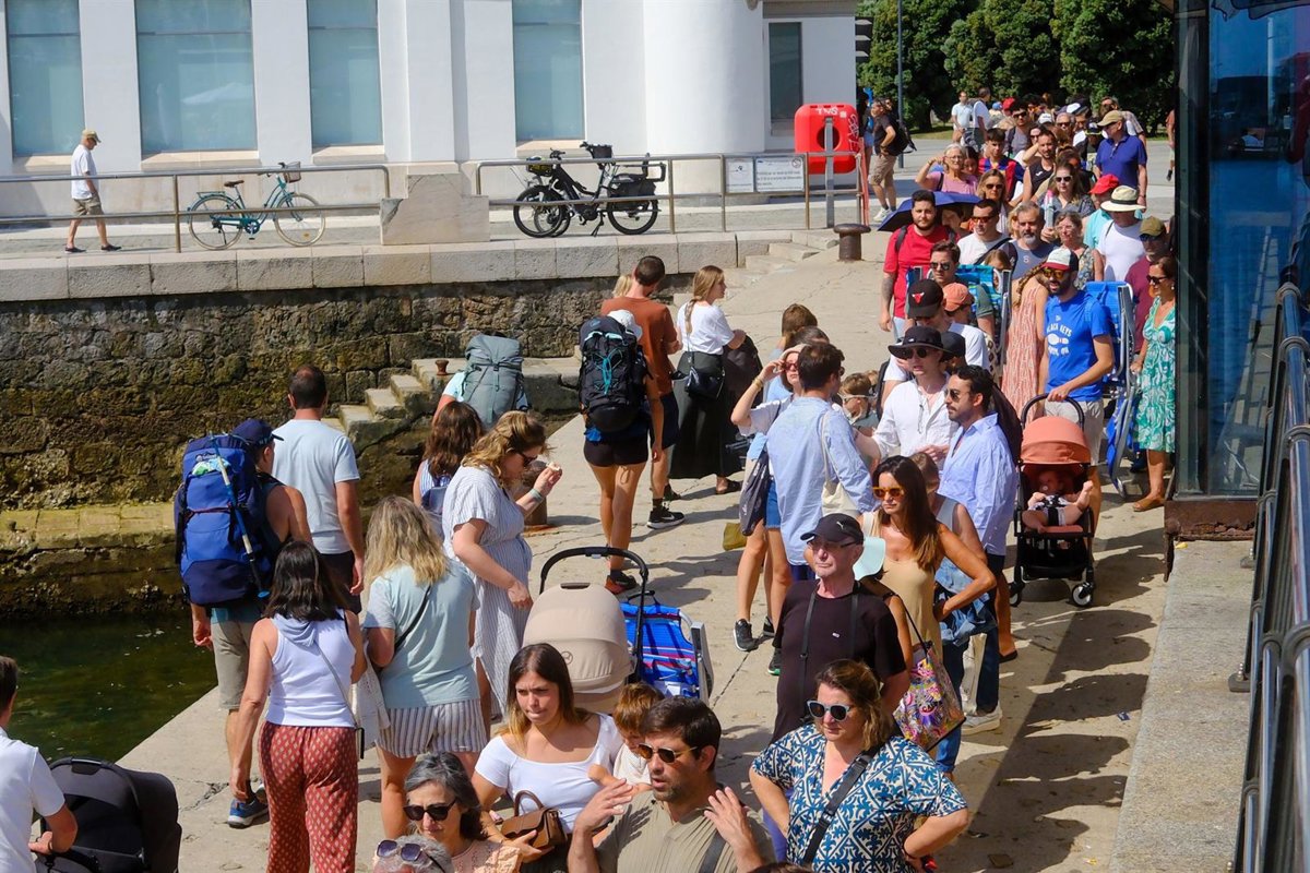 Cola de turistas para coger el barco camino a la playa del Puntal, a 10 de agosto de 2025, en Santander, Cantabria (España). - Nacho Cubero - Europa Press