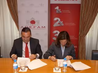El convenio ha sido firmado por la presidenta de Adefam, Inés Juste, y por el director territorial de Madrid de Banco Santander, Manuel Iturbe.