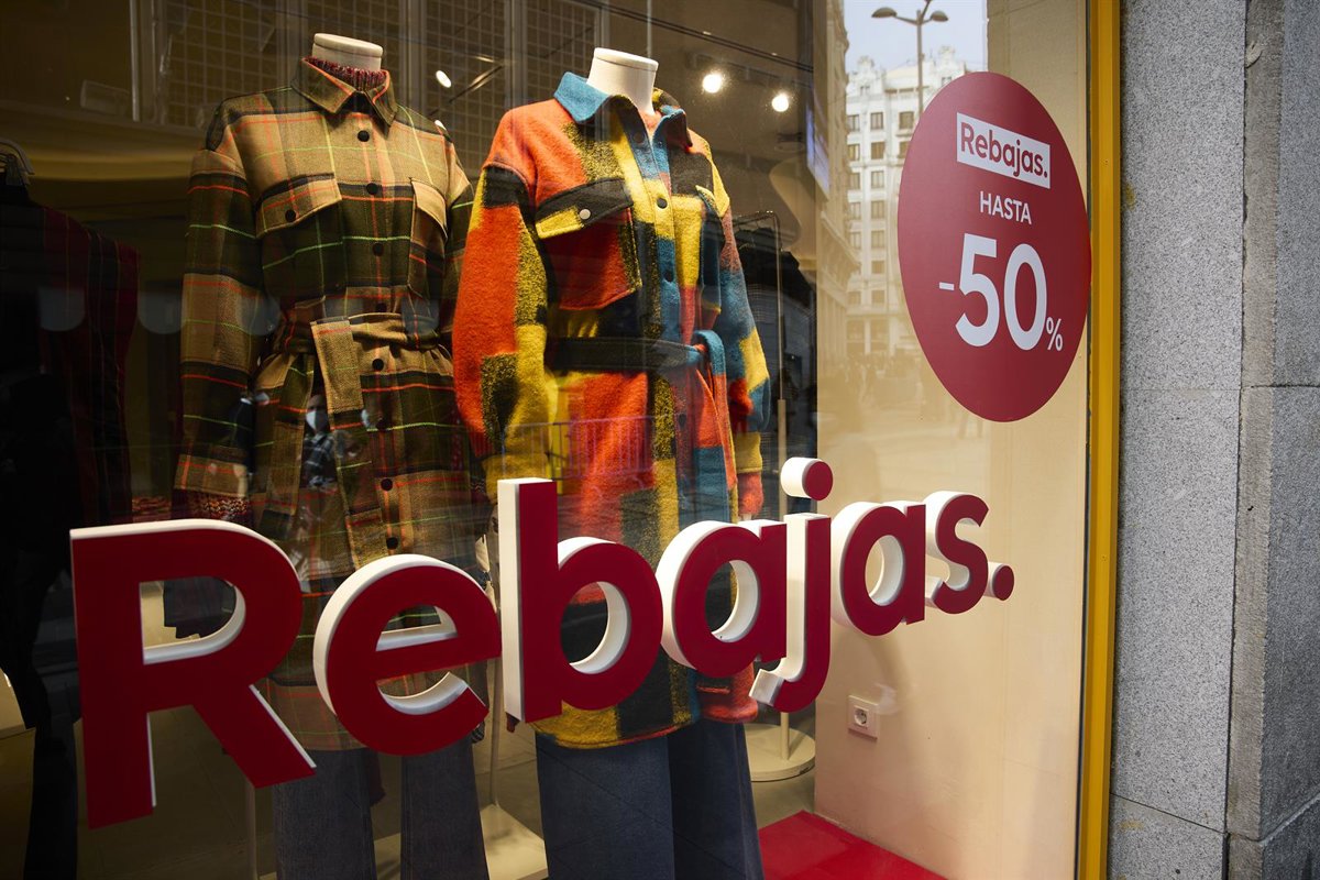 Archivo - Un cartel de rebajas en un escaparate en una calle comercial del centro de Madrid - Jesús Hellín - Europa Press - Archivo