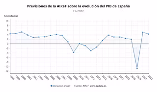 Este año, las previsiones macroeconómicas y fiscales de la AIReF proyectan una disminución en la ratio de deuda sobre PIB de 4,5 puntos sobre el nivel registrado en 2021, que situarían la ratio en el 113,9% en el año 2022.