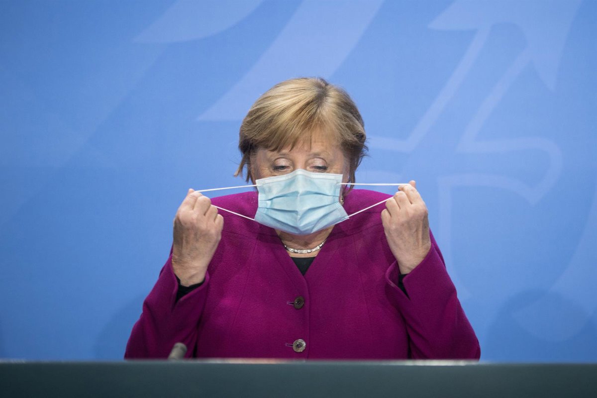 Archivo - Angela Merkel se quita la mascarilla en una rueda de prensa en Berlín - Stefanie Loos/AFP POOL/dpa - Archivo