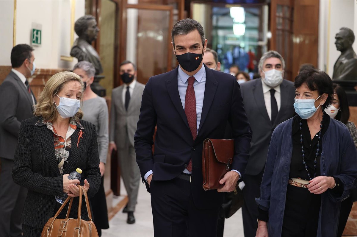 La vicepresidenta tercera y ministra de Asuntos Económicos y Transformación Digital, Nadia Calviño; el presidente del Gobierno, Pedro Sánchez; y la ministra de Educación y FP, Isabel Celaá - EUROPA PRESS/E. Parra. POOL - Europa Press