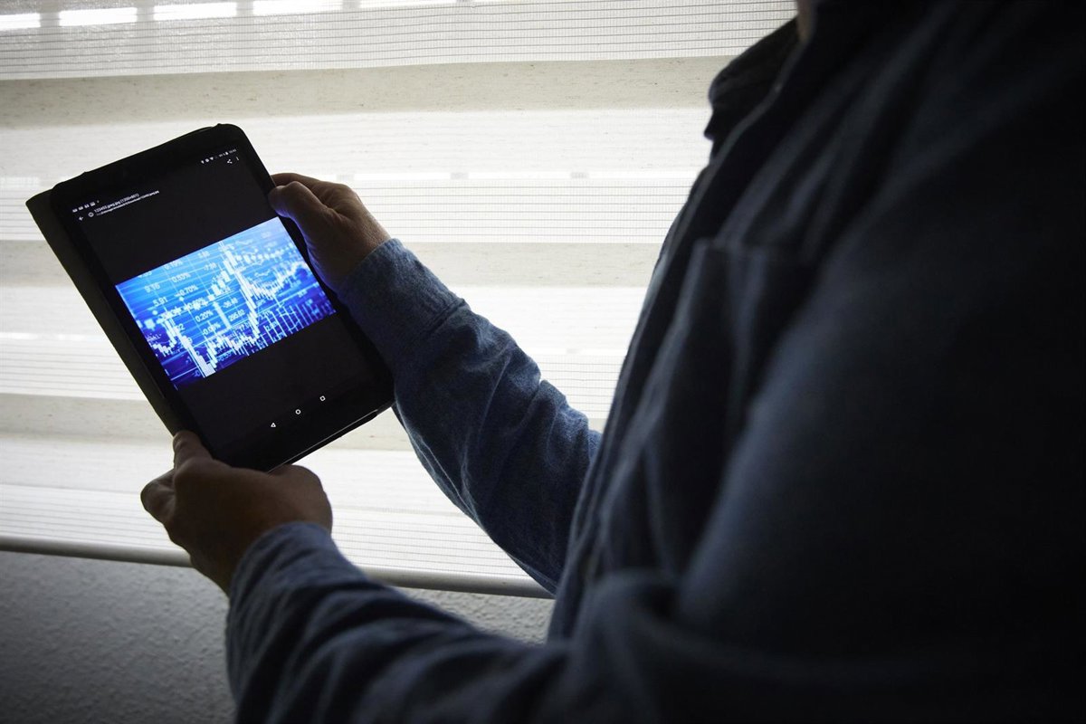 Archivo - Un hombre sujeta una tablet con un gráfico, a 4 de enero de 2022, en Madrid, (España). - Jesús Hellín - Europa Press - Archivo