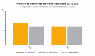 El Banco de España ha elevado cuatro décimas su previsión de crecimiento del Producto Interior Bruto (PIB) español este año, desde el 1,9% al 2,3%, mientras que ha mantenido sus estimaciones para 2025 y 2026, en el 1,9% y el 1,7%, respectivamente.