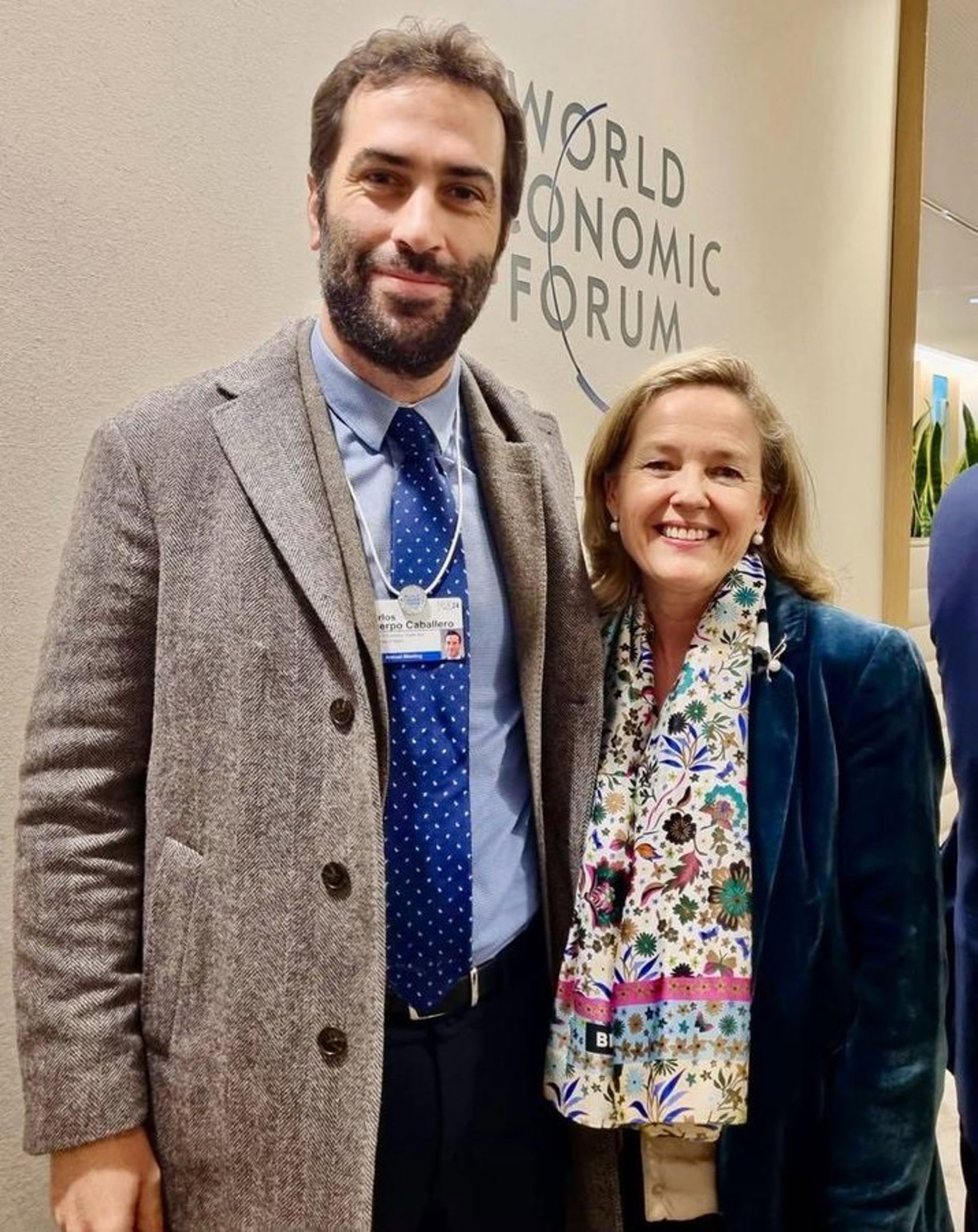 La presidenta del Banco Europeo de Inversiones (BEI) y exvicepresidenta del Gobierno español y exministra de Economía, Nadia Calviño, se ha encontrado en el Foro Económico de Davos (Suiza) con su sucesor en el Ministerio de Economía, Carlos Cuerpo, y se ha mostrado "orgullosa" de la representación de España en esta cita mundial.