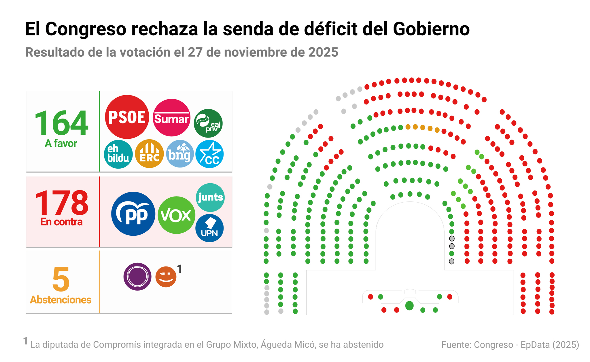 El Pleno del Congreso ha rechazado este jueves con los votos de PP, Vox, Junts y UPN los objetivos de estabilidad presupuestaria y de deuda pública para el conjunto de las administraciones entre 2026 y 2028, que es el paso preliminar a la presentación de los Presupuestos Generales del Estado de 2026.