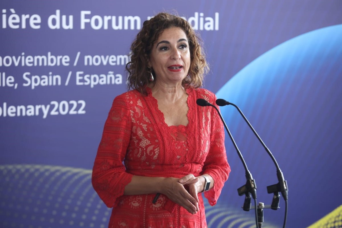 La ministra de Hacienda, María Jesús Montero, en la inauguración del Foro Global sobre Transparencia e Intercambio de Información con Fines Fiscales de la OCDE. - JOAQUIN CORCHERO / EUROPA PRESS