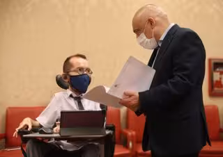 El portavoz de Unidas Podemos en el Congreso, Pablo Echenique, conversa con el secretario general del PSOE en el Congreso, Rafael Simancas, minutos antes de que de comienzo la comisión de Presupuestos - EUROPA PRESS/E. Parra. POOL - Europa Press