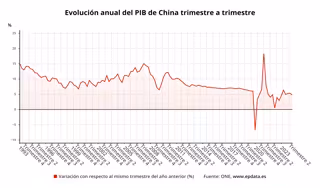 La expansión interanual de la economía china entre abril y junio de 2024 refleja el crecimiento del 3,6% del sector primario, mientras que el sector secundario aumentó un 5,6% y los servicios crecieron un 4,2%.