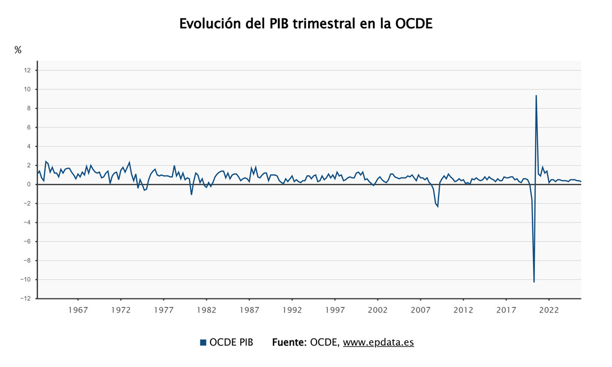 El crecimiento de los miembros de la Organización para la Cooperación y el Desarrollo Económico (OCDE) fue del 0,3% en el cuarto trimestre de 2025, una décima menos que los tres meses anteriores y la menor expansión de las economías avanzadas desde el segundo trimestre de 2024.