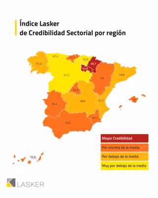 El análisis por comunidades autónomas del Índice Lasker ha mostrado también diferencias territoriales muy significativas, con una brecha de más de 21 puntos entre la región que da más credibilidad, Navarra con un 66,7 y País Vasco, con la menor puntuación (45,5 puntos).