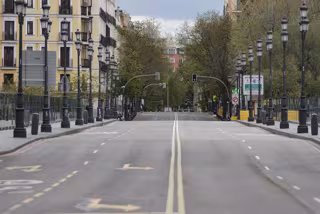 La calle Bailén aparece completamente vacía en el día 33 del estado de alarma, en Madrid (España), a 16 de abril de 2020. - Eduardo Parra - Europa Press